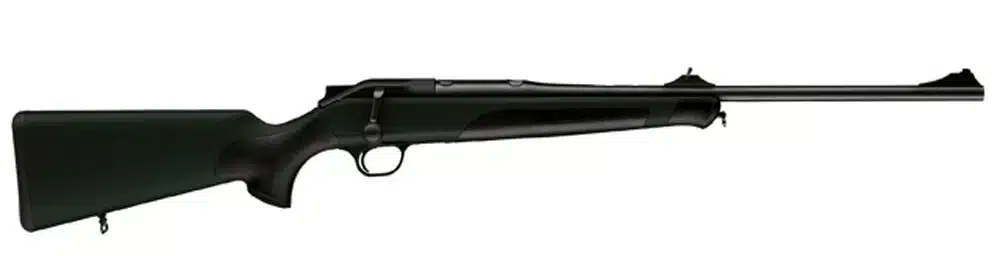 Komplett Blaser R8 gevär i syntet med ställbar kolvkam och löstagbart magasin. Ett fulländat ergonomiskt grepp som underlättar för snabbt skytte. Magasinet och avtryckaren är sammanfogade till en smidig modul. För att ge maximal komfort och säkerhet har Blaser utvecklat en ny typ av kolv till R8. Den unika utformningen av kammen fördelar rekylen horisontellt över axeln och ger betydligt bekvämare avfyrning samtidigt som den brantare vinkeln och handstödet på pistolgreppet ger ett avslappnat grepp för ett kontrollerat skytte och bättre träffresultat.