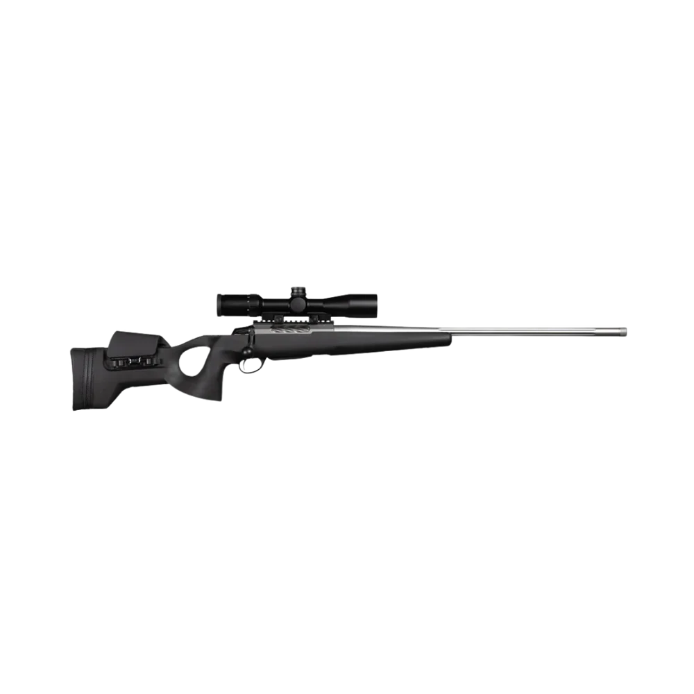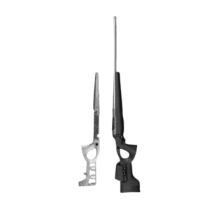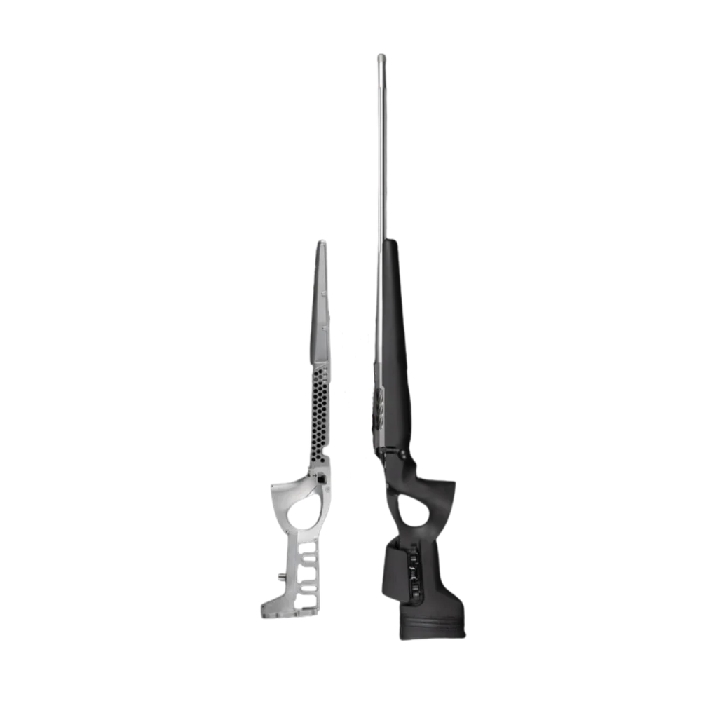 Kolvkammen är justerbar och låsbar vilket säkerställer stabil inställning och eliminerar risken att den lossnar. Framstocken är dessutom förberedd för både Picatinny- och Arca-rail vilket gör chassit redo för stativ, bipods och andra tillbehör.